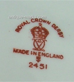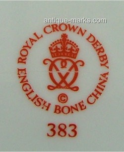 Click on the mark to open the Royal Crown Derby History and Marks sections and the Derby Porcelain Gallery